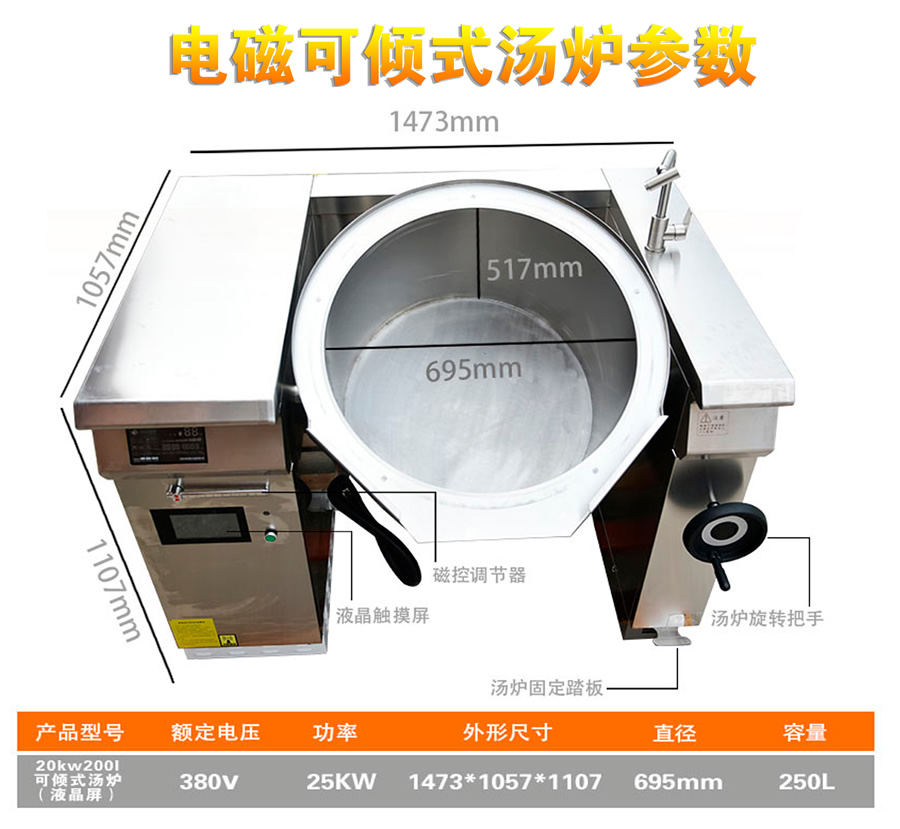 中央廚房設備->熱調理區(qū)設備->20KW200L可傾式湯爐(液晶屏) | |||||||