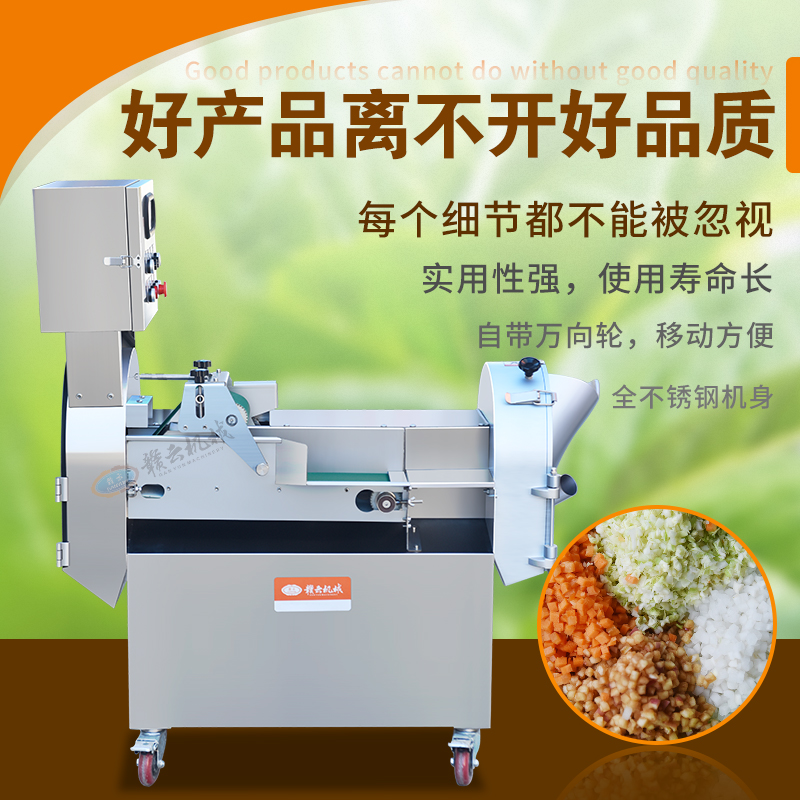 好產(chǎn)品離不開好品質(zhì),贛云切菜機采用全不銹鋼機身,堅固耐用,使用壽命長。機器細(xì)節(jié)之處也經(jīng)過精心打磨,注重品質(zhì),值得廣大客戶的信賴,設(shè)備實用性強。切菜機工作效率高,一臺機器堪比10個人工,大大的節(jié)省了人工成本。