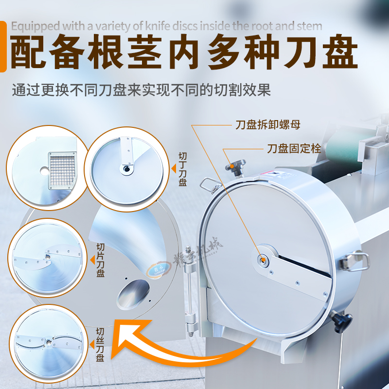 用于葉菜、球莖類蔬菜的切段、切塊、切片、切絲、切丁的快速精準(zhǔn)切割。