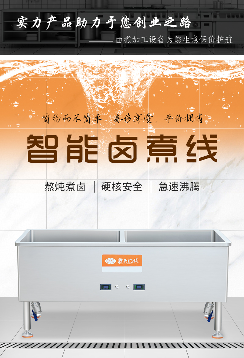 5米水煮槽蒸汽款 1.8米加寬智能溫控水槽 大盤肉丸成型機[視頻] 智能溫控雙加熱水槽[視頻] 智能鹵煮線1.8米[視頻] 智能鹵煮線1.5米[視頻] 恒溫水煮槽(燃氣)